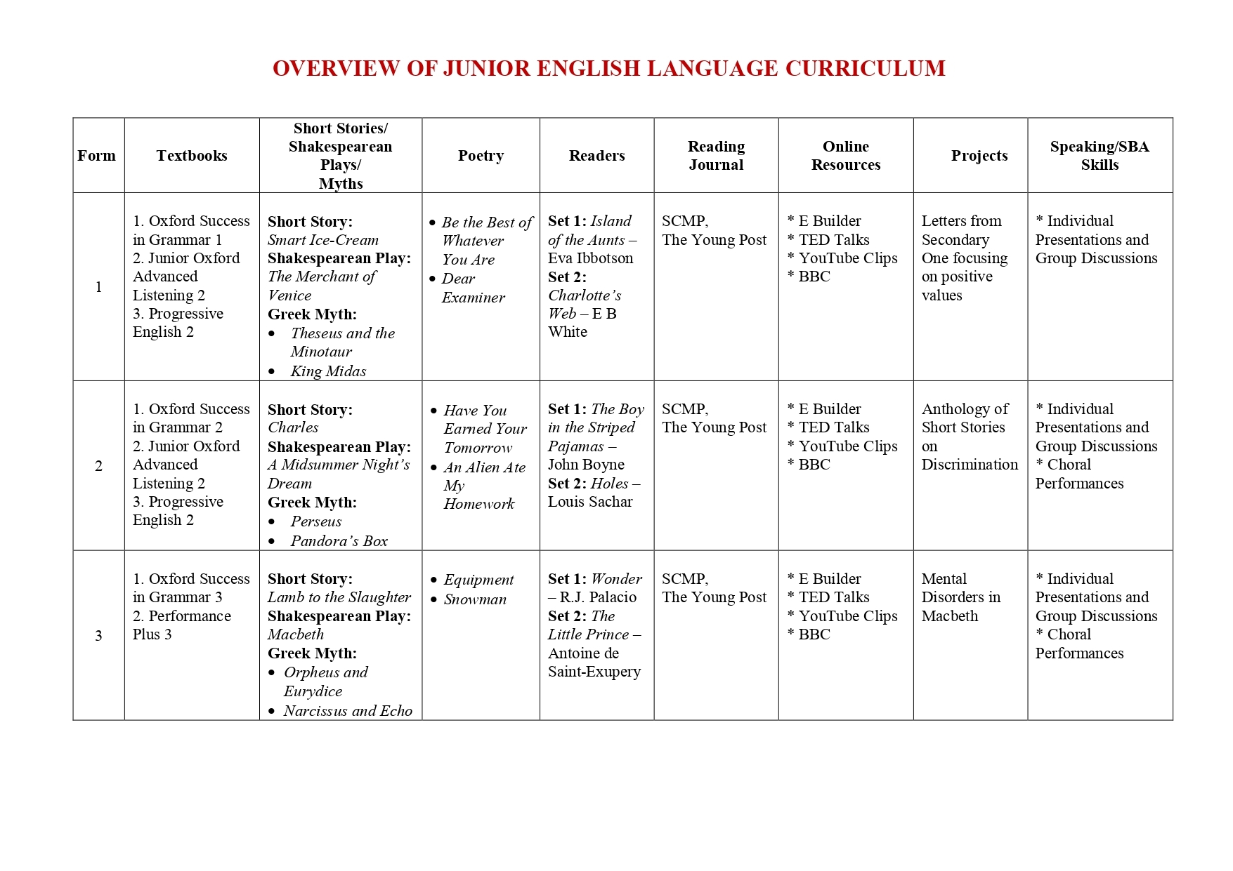 At the core of English language acquisition lies the act of communication—whether it unfolds in face-to-face interactions, written discourse, or the reading of literature. Through the study of English, students gain profound insights into the cultures that utilize the language. Mastery of English should forge connections to a broader spectrum of knowledge. Additionally, we promote cultural awareness by integrating literature from various backgrounds into the curriculum. By engaging in comparative analyses with their primary language and culture, Chinese, students develop a heightened awareness of diverse worldviews. Together, the interconnected elements of communication, culture, connection, and comparison empower English learners to engage in multilingual communities both locally and globally, adapting to various contexts with cultural sensitivity.